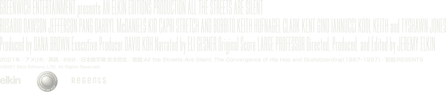 Show”(無名時代のバスタ・ライムスの貴重映像あり)、もちろんナズやノトーリアス・B.I.G.らの登場など、様々なトピックを絡めつつ、証言者にはSupremeブルックリン店店長も務めるジェファーソン・パンを始めとするプロスケーターの面々、キッド・カプリやRun-D.M.C.のダリル・マクダニエルズなど世界的なラッパー/DJたち、俳優のロザリオ・ドーソンといった当時のリアルを知る重要人物たちが大挙出演。アーカイヴ映像では様々な有名スケーターやラッパーのほか、『KIDS/キッズ』の脚本を務めた映画監督、ハーモニー・コリンの若き日の姿も見ることができる。