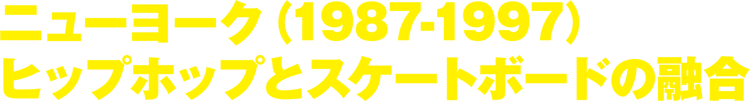 1990年代のニューヨーク。すべてはここから始まった。いまや世界を席巻するメインカルチャーにまで成長を遂げたヒップホップとスケートボード――当初は反目し合ってもいたふたつのストリートカルチャーが、やがて出会い、手を結び、爆発的な融合を果たす。音楽、ファッションなど、あらゆる若者文化を呑み込み、コアからマスへと拡大していった約10年間。この映画はそんな勃興と隆盛の記録と、巨大化の過程から生じた光と影の“現代史”を、貴重な映像と数々のキーパーソンたちの証言で振り返る傑作ドキュメンタリーである。